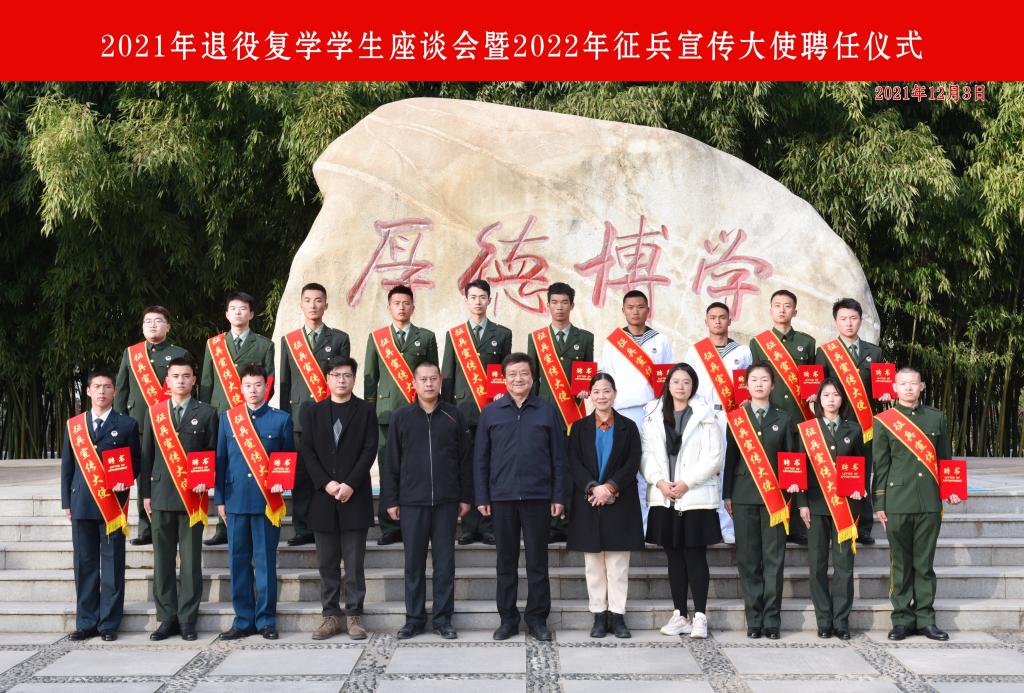为了加强退役复学学生之间的沟通交流,强化同学们“退役不褪色”的责任心和使命感,继续发扬部队的优良传统和作风,争做表率,在同学中发挥示范带头作用,进一步推动Beat365国防教育和征兵工作的顺利开展,12月3日下午,Beat365官方网站2021年退伍复学学生座谈会暨征兵宣传大使聘任仪式在德勤楼第四会议室隆重举行。校党委副书记栾高明同志出席座谈会,学工部(武装部)相关同志及全体2021年退役复学学生参加了会议。座谈会由学工...