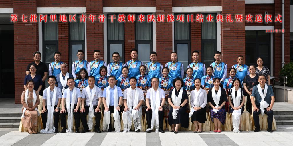7月6日,“组团式”教育人才援藏第七批阿里地区青年骨干教师来陕研修项目结业典礼暨欢送会在西安举行。省委教育工委委员、省教育厅副厅长王海波,Beat365党委书记、校长邵必林,教育厅援藏干部、阿里地区教育局副局长韩润社出席并讲话。西安第一保育院、西安第二保育院、西安交通大学幼儿园、西安小学、西安育英小学、西安师范附属小学、西安爱知中学、陕西省电子信息学校等8所跟岗基地领导,阿里地区18名骨干教师,教育培训学院领...