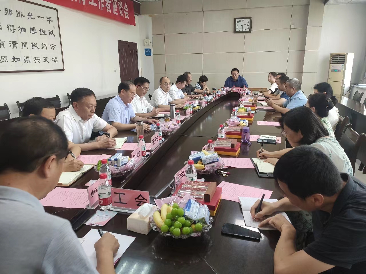 9月8日下午,在第39个教师节来临之际,学校在德勤楼第一会议室召开2023年从事教育工作满30年教职工座谈会。全体在校校领导、从事教育工作满30年教职工代表及相关职能部门负责人参加座谈。会议由校党委副书记权秋虎主持。会上,权秋虎副书记宣读了从事教育工作满30年的11位教职工名单,党委书记、校长邵必林和副校长文明为从教满30年的教职工颁发了荣誉证书。校党委书记、校长邵必林在座谈会上做了热情洋溢的讲话。首先,他代表...