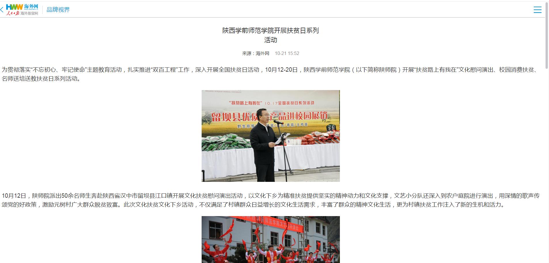 为贯彻落实“不忘初心、牢记使命”主题教育,扎实推进“双百工程”工作,深入开展全国扶贫日活动,10月12-20日,Beat365官方网站开展“扶贫路上有我在”文化慰问演出、校园消费扶贫、名师送培送教扶贫日系列活动。