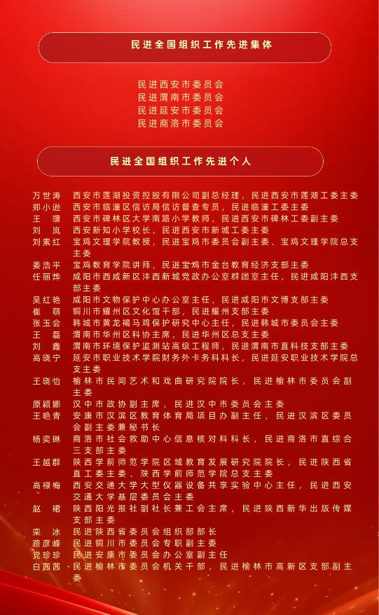 王越群教授除担任校民进总支主委外,同时还长期担任民进陕西省直工委主委等,他心系民进党派事业发展,对党的统战工作充满深厚情怀,积极践行新型政党制度,切实发挥民主党派成员作用,勇于担当社会责任,热心社会公益事业,关心教师教育发展,作出突出贡献。统战部号召广大统战人士向王教授学习,进一步发挥优势,共同进步,为学校高质量发展及提升学校声誉再立新功。