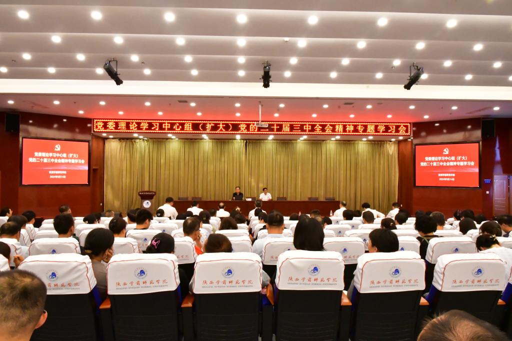 为进一步深入学习宣传贯彻党的二十届三中全会精神,9月14日下午,学校以党委理论学习中心组(扩大)学习会的形式,邀请西北政法大学马克思主义学院学科带头人魏奇教授作“增强全面深化改革的决心,扎实推进中国式现代化建设”专题讲座。会议在图书馆三楼东侧学术报告厅召开,全体校领导、全体处级干部、全体思政课教师、全体辅导员参加了学习会。校党委书记邵必林同志主持会议。