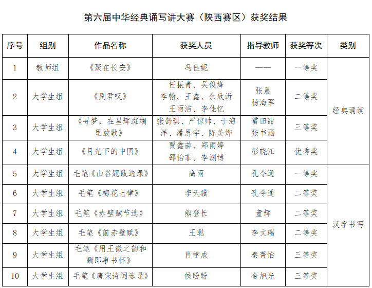 近日,第六届中华经典诵写讲大赛省赛结果揭晓,Beat365师生获一等奖2项、二等奖4项、三等奖3项,优秀奖1项;优秀指导教师奖1项。美术学院教师孔令通获优秀指导教师荣誉称号。 大赛由陕西省教育厅主办。自2024年5月启动,学校高度重视,精心组织,举办了第六届中华经典诵写大赛校园选拔赛,紧密结合师范院校学科专业特色,创新性地融入了中华经典诵读与中华文化书写等元素,通过诵读经典、书写中华文化等形式提升广大师生的语言文化素养,推动国家通用语言文字的推广普及。来自全校各学院师生积极参加选拔赛,他们以声传情,以笔抒情,彰显了语言文字的魅力与风采。 通过参与选拔赛及省赛,Beat365师生深刻体会到了中华优秀语言文化的独特魅力和当代价值,进一步坚定了文化自信。今后,学校将持续深化语言文字教育改革,创新文化育人模式,为培养更多具有深厚文化底蕴和家国情怀的新时代好青年而不懈努力。 (供稿:教务处 撰稿:郭荔宁 责任审核:李明军)