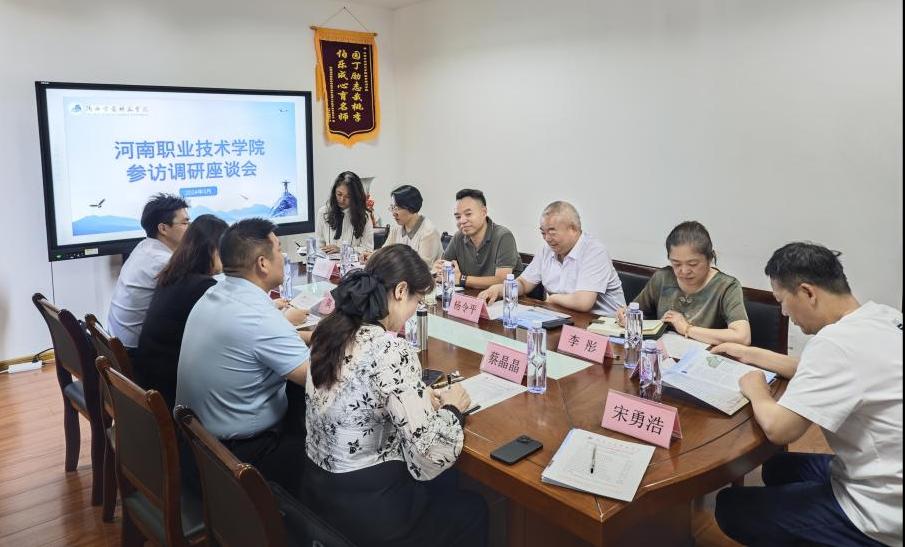 2024年5月23日,河南职业技术学院继续教育学院院长梁保然、副院长黄菲等一行5人来访Beat365学习调研。Beat365培训学院(继续教育学院)院长杨令平、副院长贺燕丽、雁塔校区党总支书记李彤和科教产业公司总经理马云等相关人员参加座谈会。座谈会由科教产业公司马云主持。