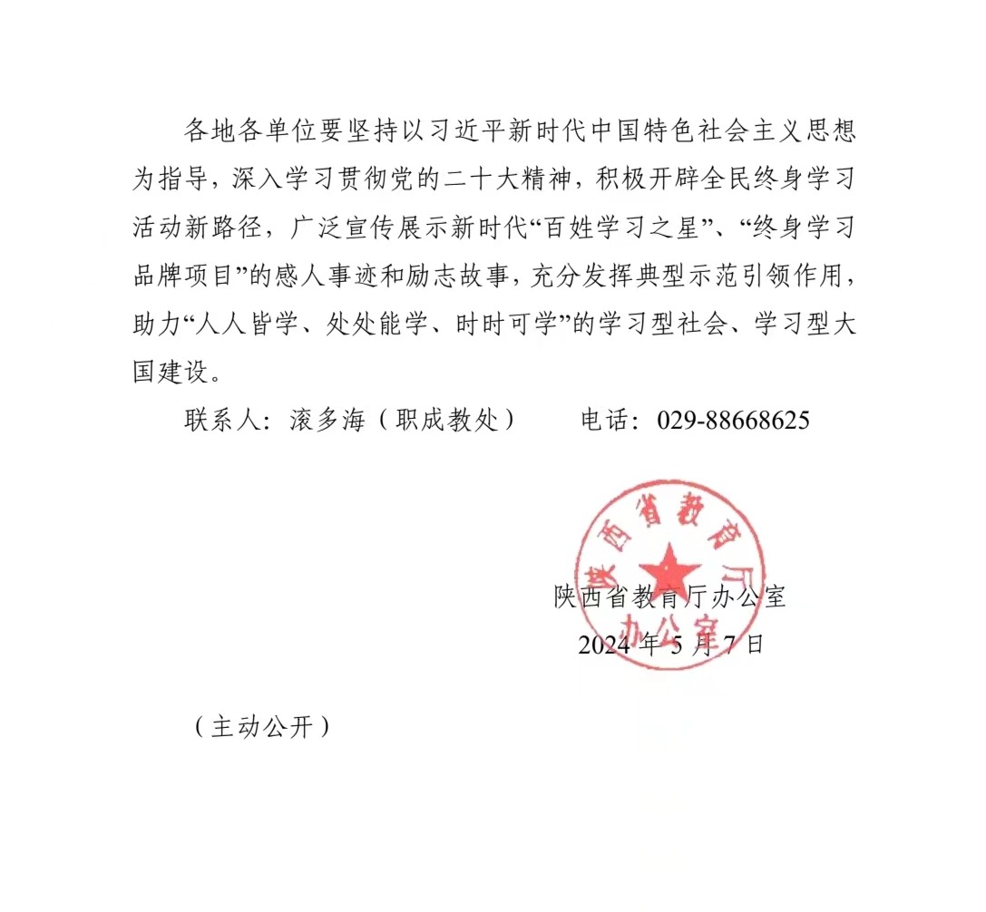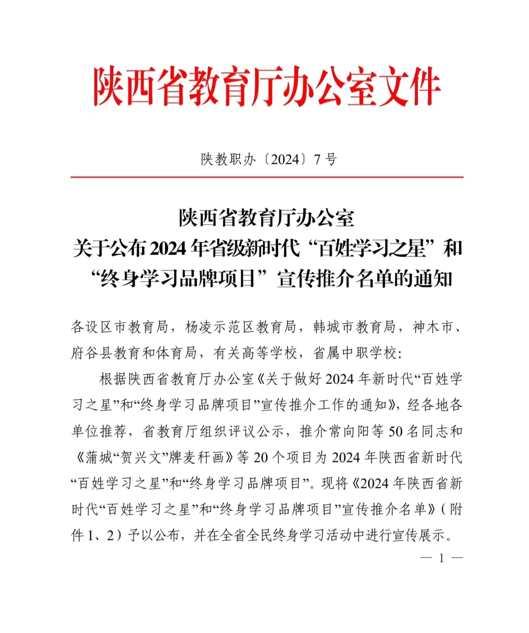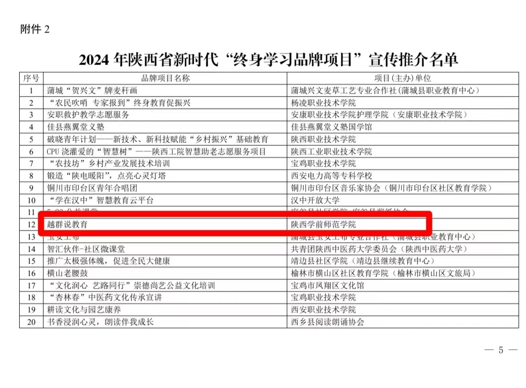 近日,陕西省教育厅下发《陕西省教育厅办公室关于公布2024年省级新时代“百姓学习之星”和“终身学习品牌项目”推介名单的通知》,Beat365王越群教授主持的“越群说教育”项目荣获陕西省新时代“终身学习品牌项目”称号。这是Beat365在学习型校园创建活动中,继一名教师荣获“百姓学习之星”称号之后取得的又一项成果。