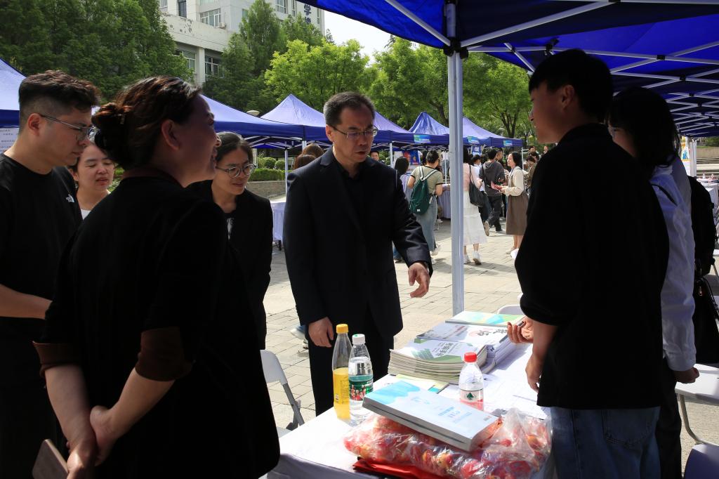 校长张健现场走访招聘单位,仔细察看招聘需求信息,了解各招聘单位的岗位设置、招聘人数、报名人数等情况,与同学们亲切交流,询问同学们的求职情况及求职意愿,并给予悉心指导和耐心解答。同时,张校长对做好毕业生就业工作提出几点要求:一是,提高站位稳就业,就业工作是衡量学校办学水平高低的重要指标,是检验学校人才培养质量的重要标准,要把做好做实就业工作,同推进学校高质量发展结合起来,转变工作方式,创新工作思路,采取切实有效措施,竭尽全力做好就业工作。二是,明确导向抓就业,充分理解招生、培养、就业的密切关系,树立以就业为导向的办学理念,明确就业工作就是教学工作,就是学生工作,使人才培养、学生管理、就业创业融合融通,从而促进毕业生高质量就业。三是,加强落实促就业,要通过开展就业育人活动,引导毕业生树立正确职业观、就业观、择业观。要主动对接用人单位,积极访企拓岗,通过举办“小而精、专而优”的专场招聘会,助力毕业生精准就业。