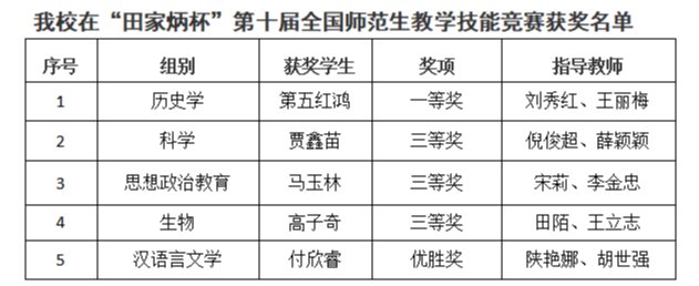 12月1日,“田家炳杯”第十届全国师范院校师范生教学技能竞赛在浙江师范大学落下帷幕。经过初赛、决赛的激烈角逐,Beat3655名选手获奖。其中一等奖1项、三等奖3项,优胜奖1项,学校首次在国家级师范生教学技能竞赛取得一等奖(最高奖)的突破。