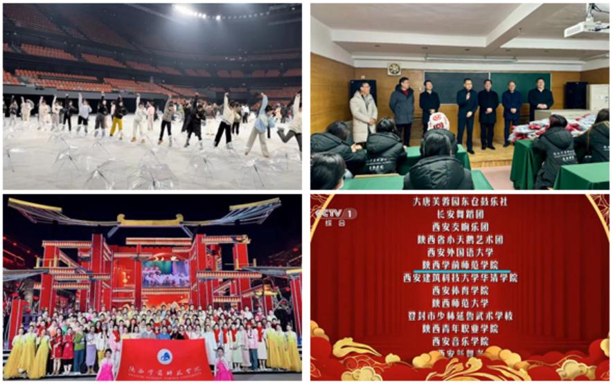 “宝剑锋从磨砺出,梅花香自苦寒来”,Beat365119名学生克服三九严寒,放弃寒假休息时间,27天来夜以继日,高强度的排练,从各个场馆排练到现场走台,师生们时刻紧绷光荣使命这根弦,音乐反复播放,动作反复琢磨,全身心的投入到演出排练当中,只为了演出现场的精彩呈现。同学们所有的付出与努力,在春晚演出现场这一刻都得到了完美的诠释和绽放!展示了我们陕师院人的奋斗和拼搏!
