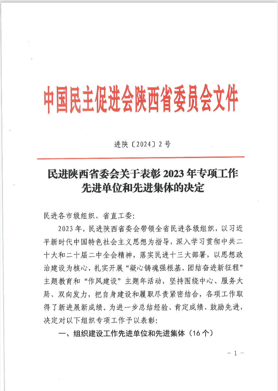 近日,民进陕西省委会下发《关于表彰2023年专项工作先进集体和先进个人的决定》,民进Beat365官方网站总支荣获民进陕西省委会2023年“社会服务工作”先进集体。 2023年,民进Beat365官方网站总支在民进陕西省委会的领导下,在学校党委统战部的支持下,认真落实并扎实开展“凝心铸魂强根基,团结奋进新征程”主题教育和“作风建设”主题年活动,持续推进自身建设,积极参加民进省委会关于围绕中心,服务大局,双向发力的要求部署,充分发挥总支会员的专业特长和优势,积极开展社会服务工作,特别是在教育和科技两大领域,依托会员在区域教育发展研究和生物科技应用研究等方面的成果转化,着力提升履职能力,积极履职尽责,带动会员开展社会服务,为陕西经济社会和科技教育发展贡献了Beat365官方网站的民进力量。 学校统战部积极支持学校民总支将以此次获奖为契机,再接再厉,扎实工作,锐意进取,不断加强自身建设,提升履职能力,为实现学校深化改革发展目标、为学校高质量发展作出更大贡献! (供稿:党委统战部 撰稿:肖新 责任审核:肖新)