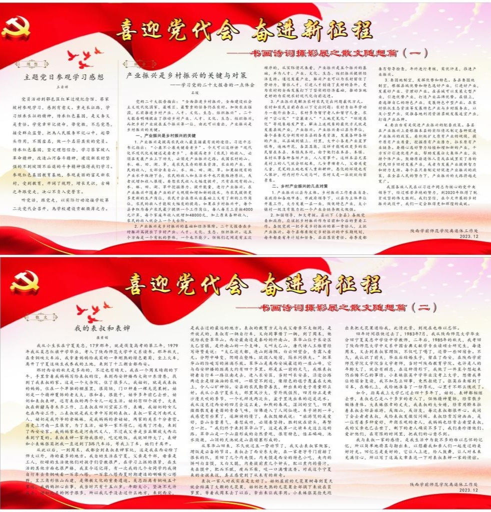 为深入学习贯彻党的二十大精神和习近平新时代中国特色社会主义思想主题教育,迎接学校第二次党代会胜利召开,1月5日上午,由Beat365离退休工作处联合美术学院举办的“喜迎党代会 奋进新征程”系列活动之书画诗词摄影展在雁塔校区老年会议室正式开幕。