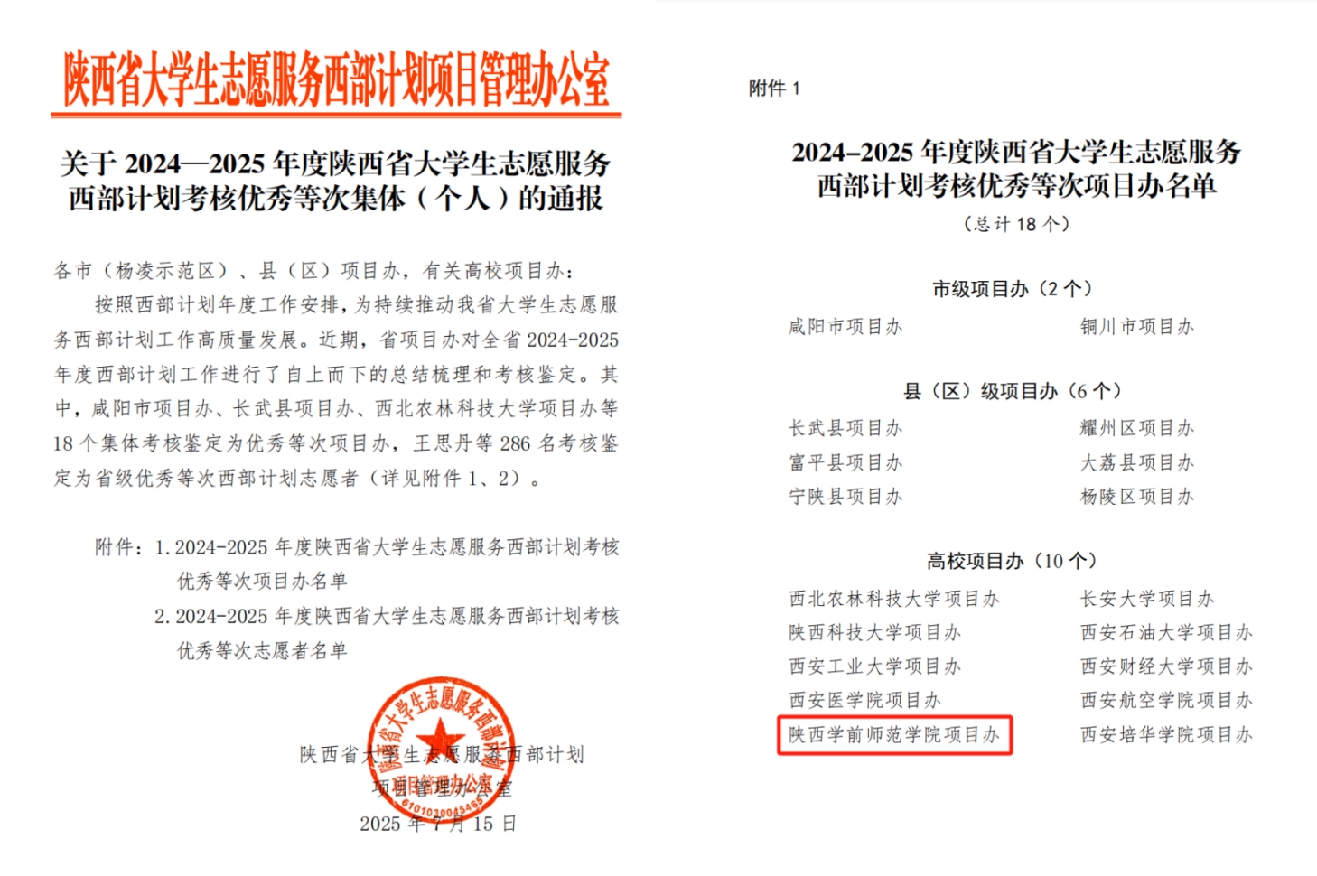 【校团委】 近日,陕西省大学生志愿服务西部计划项目管理办公室发布了《2024-2025年度陕西省大学生志愿服务西部计划考核优秀等次集体(个人)的通报》,Beat365西部计划项目办(校团委)荣获2024-2025年度陕西省大学生志愿服务西部计划考核优秀等次项目办,Beat3652023届毕业生宋建松荣获“2024-2025年度陕西省大学生志愿服务西部计划考核优秀等次志愿者”,李坤晖荣获“2024-2025年度陕西省大学生志愿服务西部计划考核优秀等次志愿者”。
