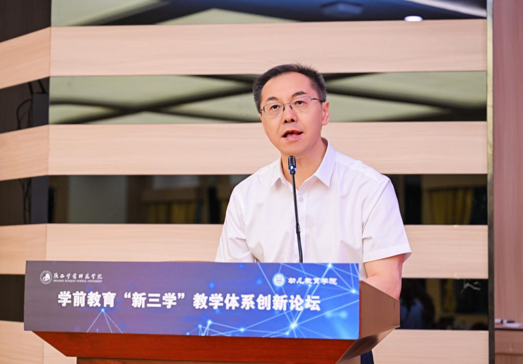 2025年8月23日上午,由学校主办、幼儿教育学院承办,教育部高等学校幼儿园教师培养教学指导委员会和教育学类教学指导委员会提供学术支持的“学前教育‘新三学’教学体系创新论坛”在西安市长安区常宁宫酒店会议中心召开。本次论坛旨在积极响应国家《学前教育法》和《本科专业类教学质量国家标准》等政策精神,推动学前教育专业内涵发展,构建以“学前儿童发展科学、学前儿童保育学、新学前教育学”为核心的“新三学”教学新体系。全国17所高校的学前教育专家学者、“三学”课程骨干教师及行业代表围绕新时代学前教师素养与“新三学”教学体系创新展开深入研讨。副校长李明军主持开幕式并介绍了论坛召开的背景与主题。