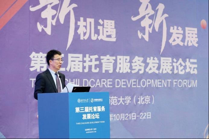 2023年10月21—22日,第三届托育服务发展论坛在北京师范大学成功举办。本届论坛的主题为“新机遇·新发展”,论坛由北京师范大学社会发展与公共政策学院等相关单位共同承办,采用“线下+线上”同步进行。与会领导、专家学者、行业代表围绕婴幼儿托育服务领域广泛关注的热点话题,分别从普惠托育服务体系构建、医育结合婴幼儿照护服务、托育人才培养与建设、高校办托产教融合模式、家庭养育指导与婴幼儿照护服务、婴幼儿托育服务高质量发展、托育需求与托育机构的运营管理等方面,分享了前沿观点、研究成果及实践经验。