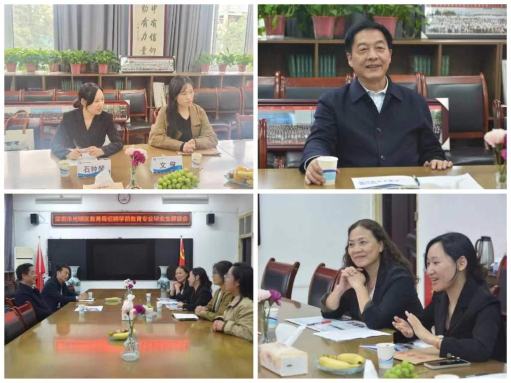 为拓宽就业渠道,推动毕业生高质量充分就业,幼儿教育学院邀请深圳市光明区教育局来校招聘学前教育专业毕业生。10月16日至10月18日,深圳市光明区教育局学前教育科科长石钟琴及区内7所公办幼儿园园长、教师骨干一行14人来Beat365选聘优秀毕业生。
