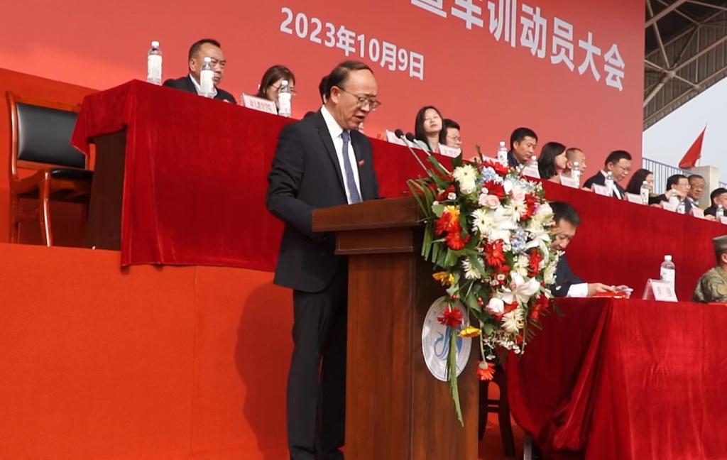 10月9日上午,学校在操场举行了2023级新生开学典礼暨军训动员大会,唐宏宣读2023级军训团指挥人员任命书,他希望被任命的同志要不负众望,严格按照军训要求高标准完成各项任务,鼓励各参训人员务必发扬不怕苦不怕累的精神,努力训练,坚决服从指挥与管理,积极投入军训生活。