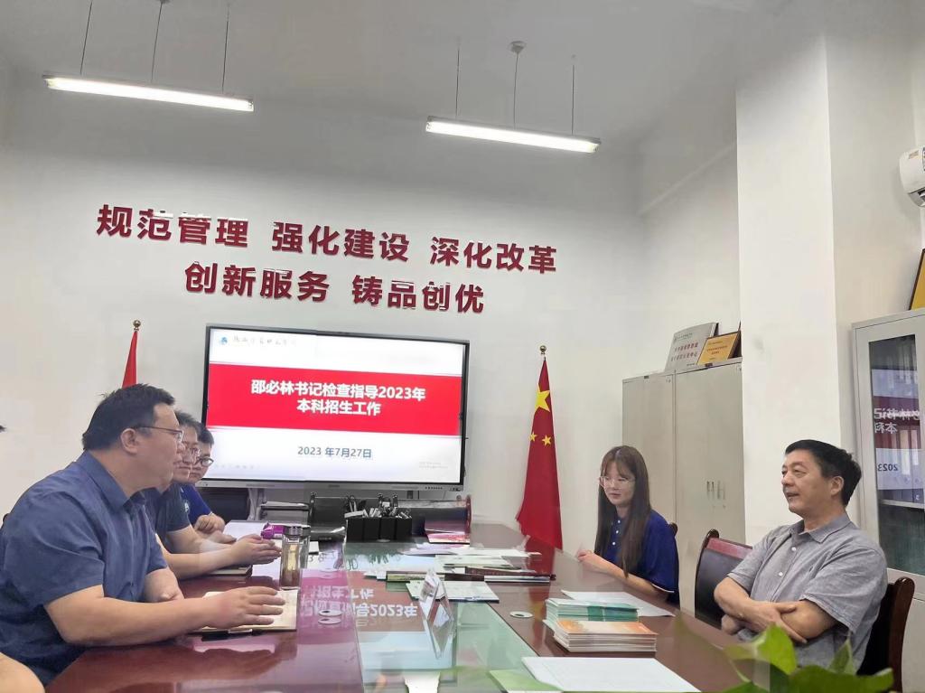 7月27日上午,党委书记、校长邵必林专程到学校本科招生录取现场,检查指导2023年招生录取工作,慰问一线工作人员。
