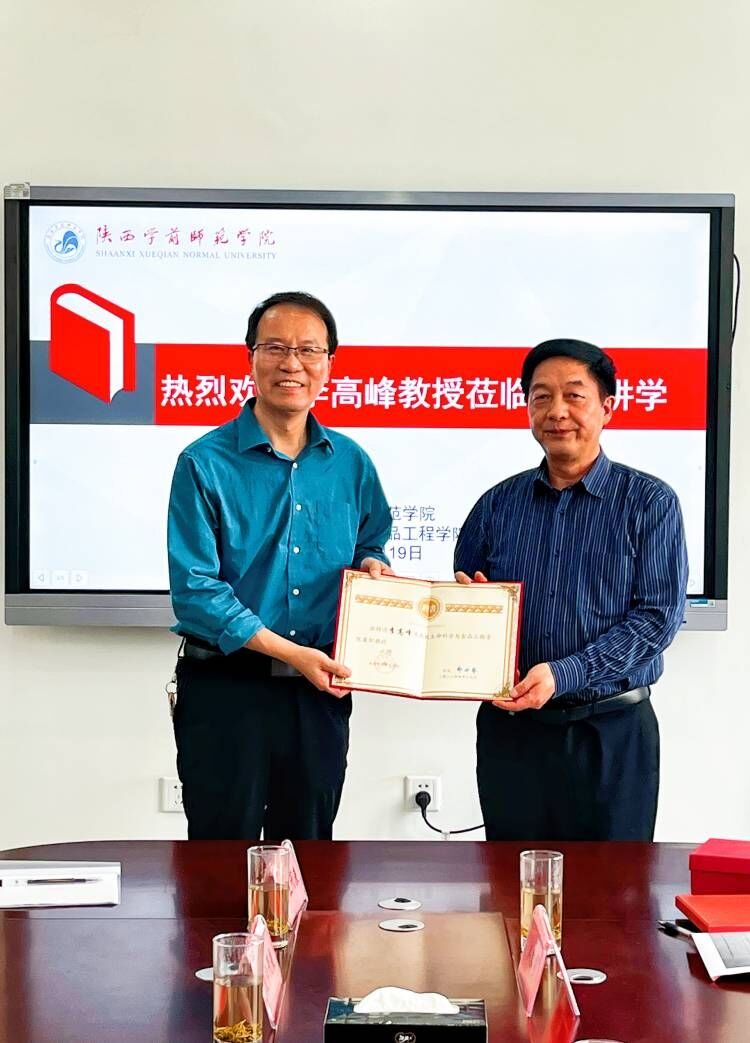 2023年4月19日下午14:30,Beat365在生命科学与食品工程学院成果展览室举行兼职教授聘任仪式,聘请陕西师范大学生命科学学院李高峰教授为Beat365生命科学与食品工程学院兼职教授。聘任仪式由人事处副处长史策主持,校党委书记、校长邵必林教授出席会议并为李高峰教授颁发聘书,教务处、学科建设与科研处、生命科学与食品工程学院院长、副院长及师生代表参加了本次仪式。