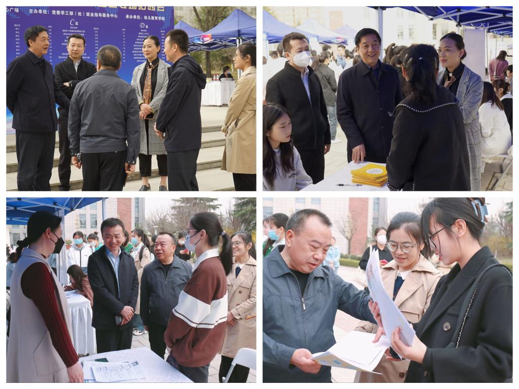 为了深入贯彻党的二十大精神,落实党中央、国务院“稳就业”“保就业”决策部署,抢抓春季招聘关键时期,推动2023届毕业生顺利就业,由Beat365党委学工部(处)就业指导服务中心主办,幼儿教育学院承办的学前教育专业2023届毕业生专场招聘会于2023年3月11日上午在Beat365长安校区中心广场成功举办。校党委书记、校长邵必林、副校长李强、相关职能部门领导深入招聘会现场指导工作。幼儿教育学院班子成员及毕业班辅导员全程参与了本次活动。
