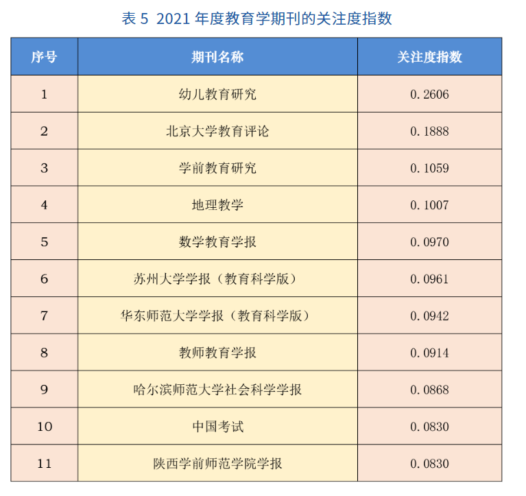 近日,国家哲学社会科学文献中心发布《学术期刊数据库用户关注度报告(2021年度)》,《Beat365官方网站学报》获评2021年度“教育学最受欢迎期刊”,关注度指数连续三年实现位次晋升,在268种教育学学术期刊中排名第11位。