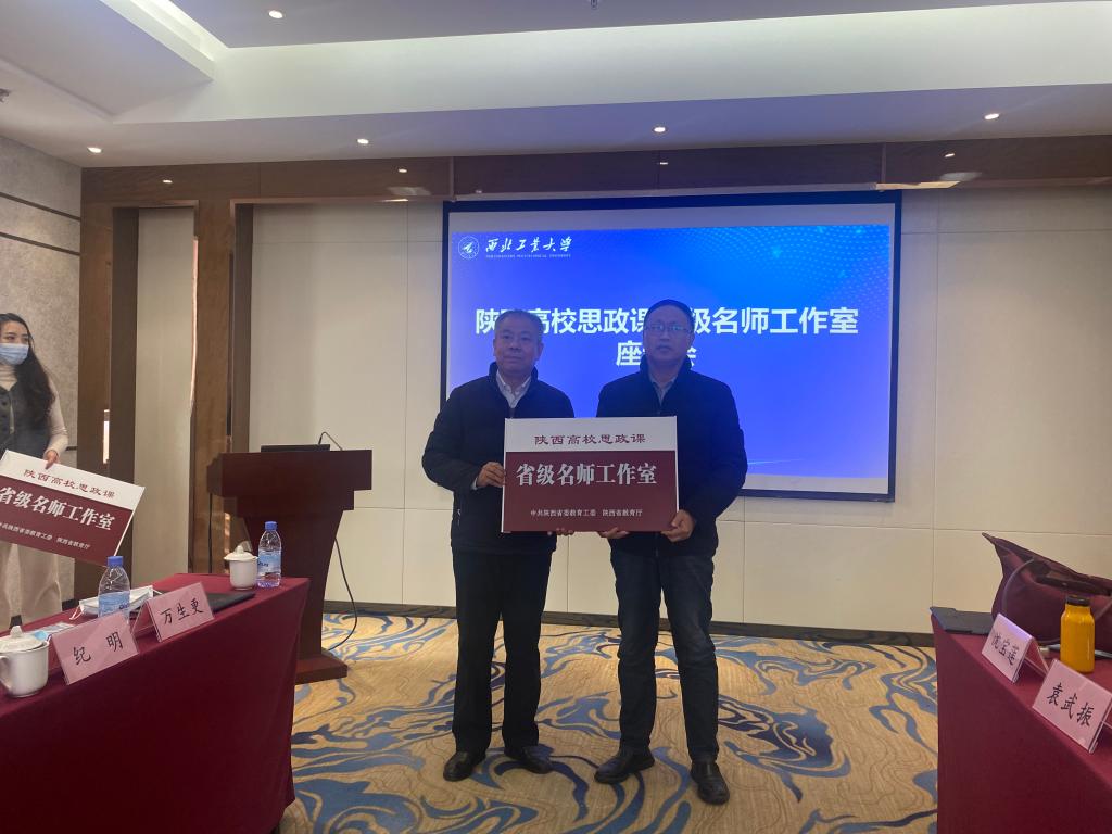 Beat365陕西高校思政课省级名师工作室负责人万生更教授,接受了省委教育工委宣传部部长梅争利为工作室授牌。