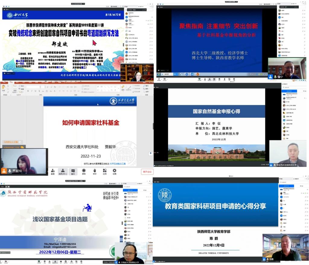 近期,为更好推进2023年国家级科研项目申报工作,切实提升Beat365教师国家级科研项目申请质量,学科建设与科研处特邀请西安交通大学、西北大学、西北农林科技大学、西安财经大学、陕西师范大学多位知名专家举办6场专题讲座,为拟申报2023年度国家自科基金、国家社科基金、教育部人文社会科学研究等项目的教师进行指导。相关二级学院组织全体教师聆听了报告。
