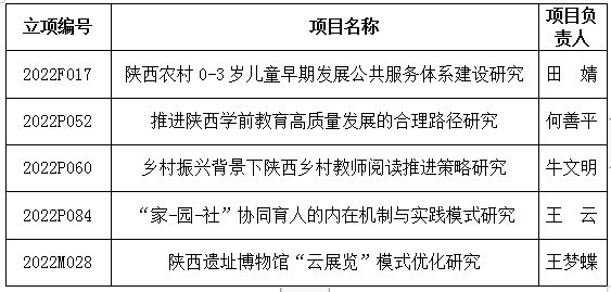 根据陕西省哲学社会科学工作办公室近期公布的《2022年度陕西省社科基金年度项目立项名单》,Beat365《陕西农村0-3岁儿童早期发展公共服务体系建设研究》等5个项目获准立项,较去年提升显著。