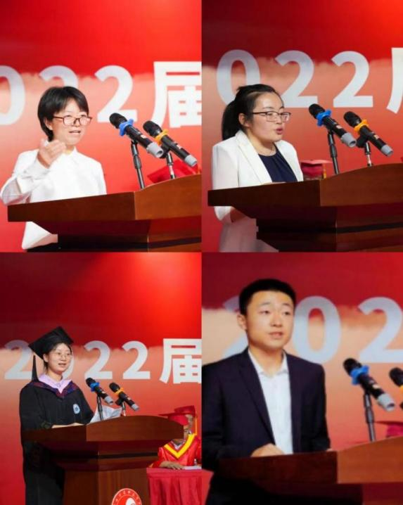 教师代表周黎、毕业生代表历史文化与旅游学院程思琪、在校生代表幼教院张园园、优秀校友代表韩婵,为毕业生送上启程的祝福和希冀。