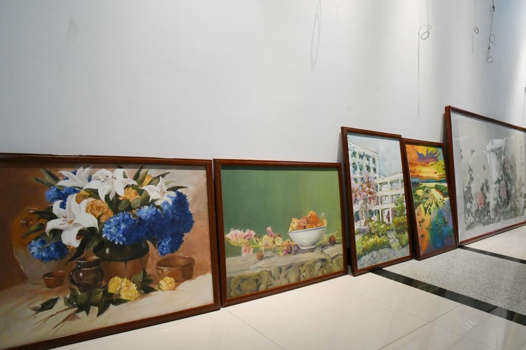 美术学院此次捐赠的40余幅学生画作,涵盖人物、山水、工笔、水墨画、油画等类别,是学生们在美术学院专业教师的精心指导下历时月余创作而成,曾面向广大师生公开展览,获得广泛赞誉。
