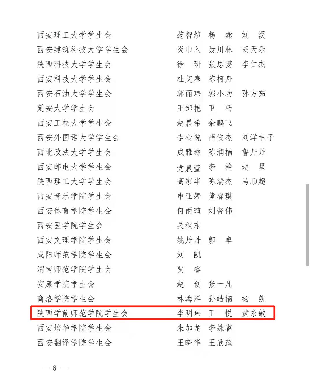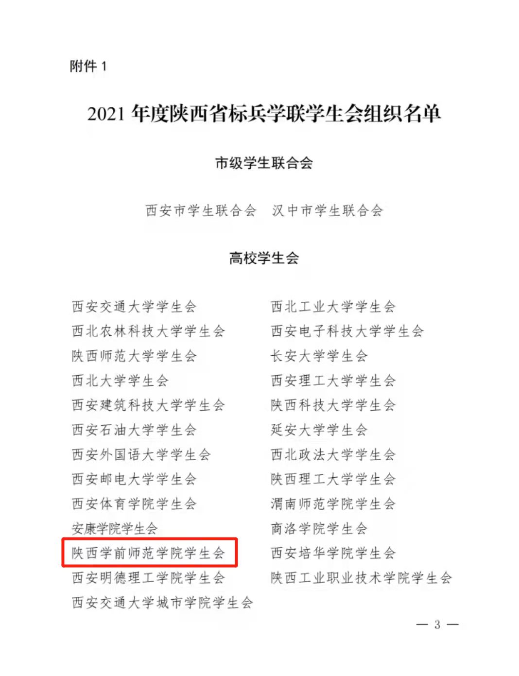 Beat365学生会获得“2021年度陕西省标兵学联学生会组织”荣誉称号;2018级学前教育专业本科生、校学生会主席团成员李明玮,2020级学前教育专业本科生、校学生会主席团成员王悦,2020级人力资源管理专业专科生、校学生会主席团成员黄永敏荣获“2021年度陕西省学联学生会先进工作个人”荣誉称号。
