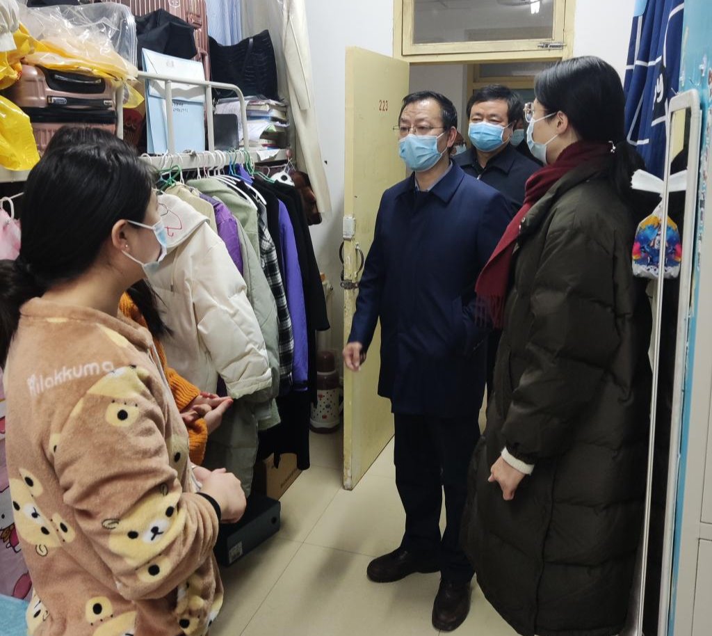 12月23日下午,学校党委书记付建成、党委副书记栾高明一行走访慰问学生,为同学们送上学校的亲切关怀。