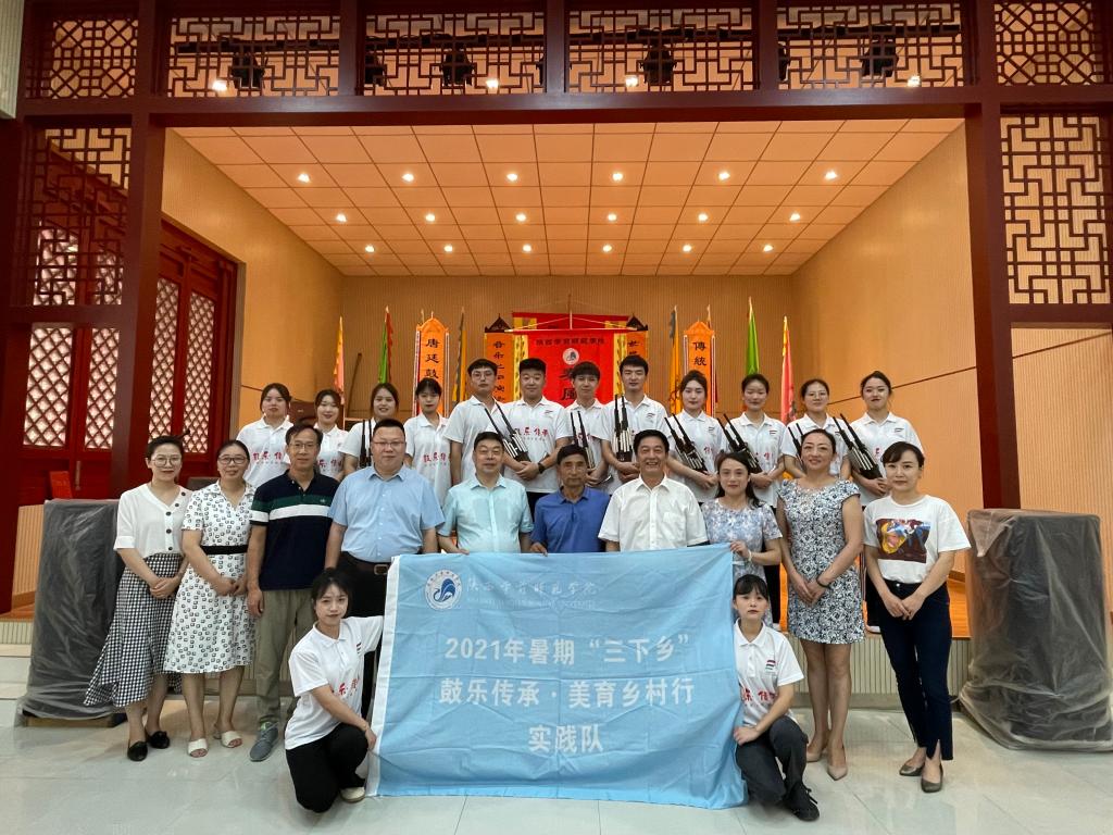 在秦风鼓乐社团暑期“三下乡”社会实践活动即将结束之际,7月29日上午校长邵必林、教务处长李明军一行顶着酷暑来到何家营鼓乐社,看望在此开展“鼓乐传承 美育乡村行”三下乡的学生。