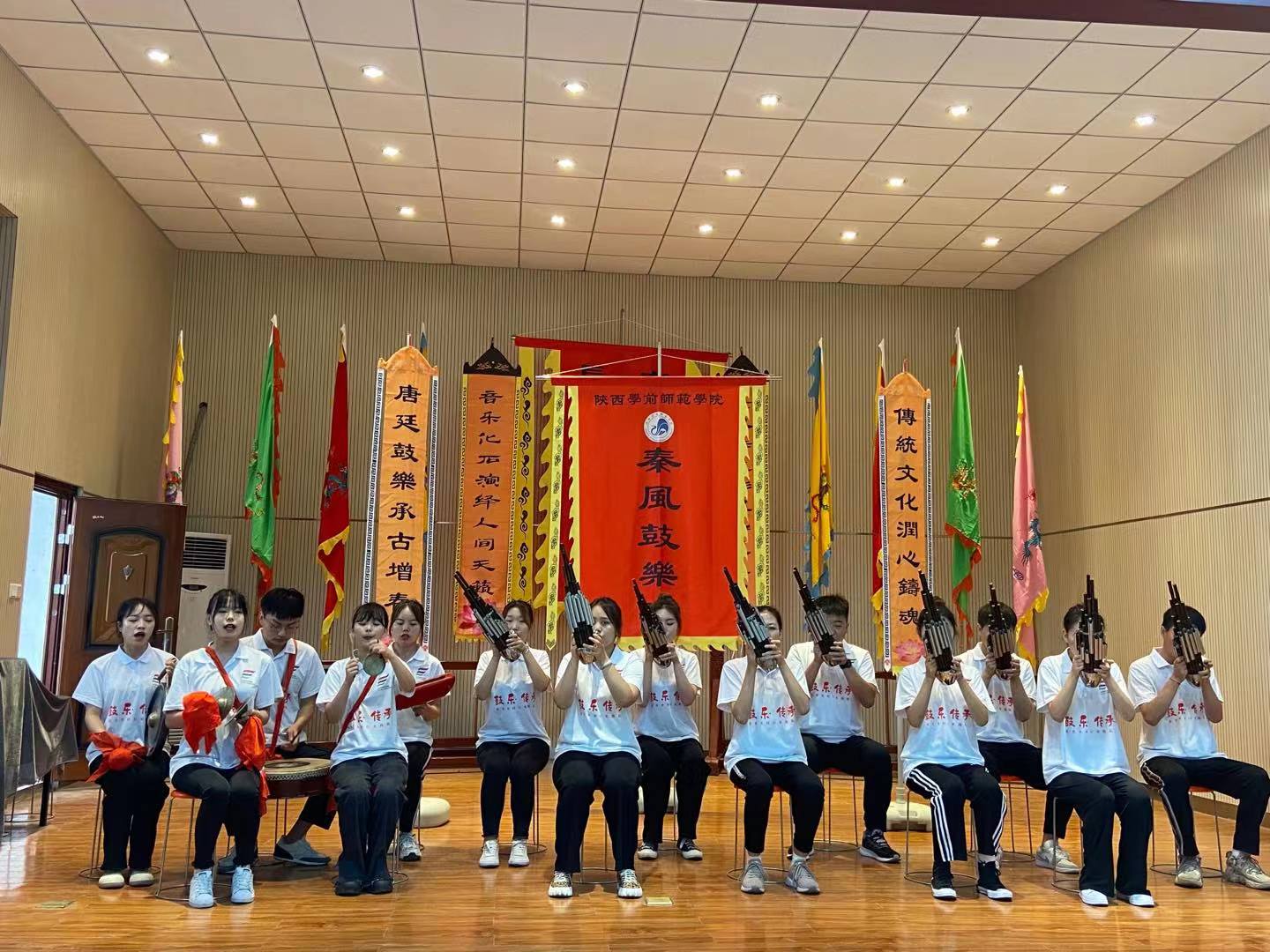 音乐学院自2019年实行社团制教学改革以来,在全国第六届大学生艺术展演上取得优异的成绩均是社团制教育教学成果的具体呈现。今年4月新成立的秦风鼓乐社团以弘扬陕西本土传统音乐文化,陶冶学生美育情操为宗旨,致力于保护与传承古代音乐文化,提升音乐专业素养,践行课程思政。秦风鼓乐社团汇报了近半个月暑期实践成果,展示《番调》《靛花开》《园林好》三首韵曲。