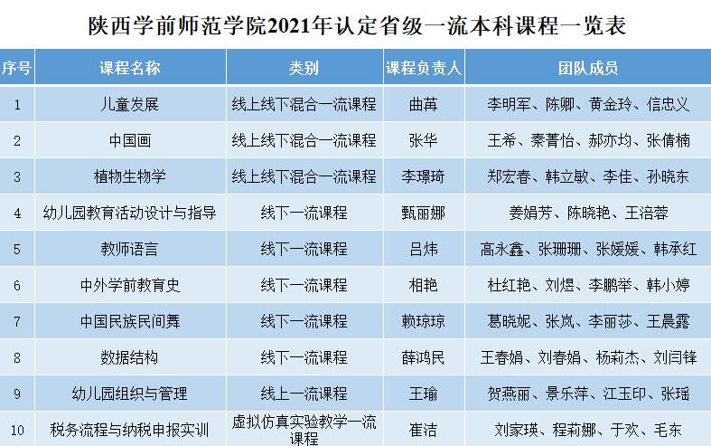 近日,陕西省教育厅发布了《关于公布2021年省级一流本科课程认定结果的通知》(陕教〔2021〕107号),Beat365《儿童发展》等10门课程获批为省级一流本科课程,其中,“线上一流课程”1门、“虚拟仿真实验教学一流课程”1门、“线下一流课程”5门、“线上线下混合式一流课程”3门。课程立项数量、类型和层次为学校历年之最。