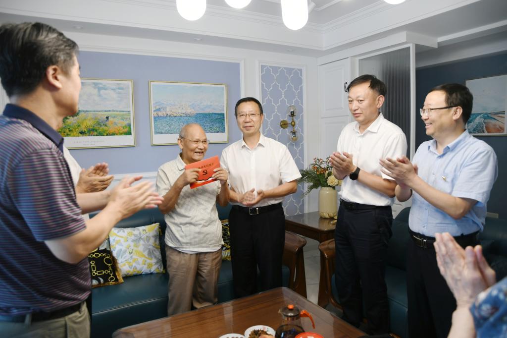 6月29日,在党的百年华诞来临之际,校党委书记付建成,校长邵必林等全体校领导亲切看望了离退休老党员、老干部,以及获得党内功勋荣誉表彰的党员、生活困难党员,转达了上级党组织和学校党委的关怀和温暖,并向他们表达了“七一”的节日祝福。