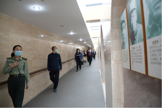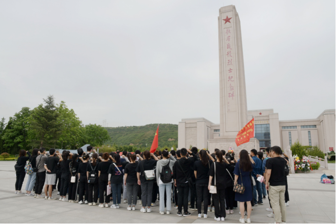 5月23日下午,全体学员庄严肃立在扶眉战役烈士纪念碑前,向烈士敬献花篮,脱帽默哀,缅怀革命先烈的丰功伟绩和大无畏的革命精神,并在纪念碑广场上举行了重温入党誓词仪式。穿过纪念碑广场,全体学员怀着崇敬的心情缓步进入扶眉战役纪念馆。扶眉战役是全国解放战争中西北战场上最大的一次战役,这场重要战役巩固了西安解放的成果,拉开了解放大西北进军大西南的序章。纪念馆内一个个感人肺腑的英雄故事、一张张弥足珍贵的历史照片,用现代技术还原的战斗场景,仿佛带领我们回到了那段浴血奋战的光辉岁月。参观结束后,学员们聆听了专题党课,共同重温中国共产党百年奋斗历程,并在纪念馆前用高昂的歌声、飘扬的红旗表达了对党的忠诚和对祖国的热爱。