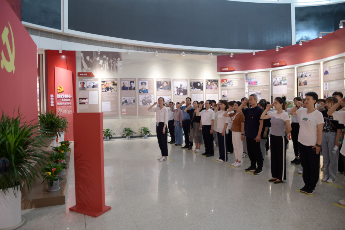 学员们来到川陕革命根据地南郑纪念馆,首先映入眼帘的是高耸入云的革命英雄纪念碑,“革命英雄永垂不朽”几个大字在阳光的照射下耀眼夺目。走进纪念馆,学员们在中国工农红军第四方面军雕塑和“陕南红了半边天”主题旁驻足凝视,认真聆听讲解,一件件红军革命器械、一幅幅史料图片、石刻标语,使学员们深受思想洗礼。在何挺颖烈士纪念碑前,向英雄默哀,敬献花篮,表达对英雄的深切缅怀和崇高敬意。学员们举起右手,集体重温入党誓词,聆听了《不朽井冈英雄,千古人民功臣》现场教学。学员们来到纪念广场,高声唱响《我宣誓》《不忘初心》歌曲,手中的党旗在阳光的映照下格外鲜艳。