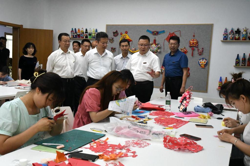随后,方光华一行参观了Beat365大学生创新创业中心,详细了解Beat365创新人才培养体制机制、创新创业教育与专业学科融合发展情况,参观了手工艺术创意工作坊、幼儿玩教具开发工作坊、音乐创作工作坊,并与第七届“互联网+”大赛训练营学生亲切交谈,勉励参赛学生精心准备争创佳绩。