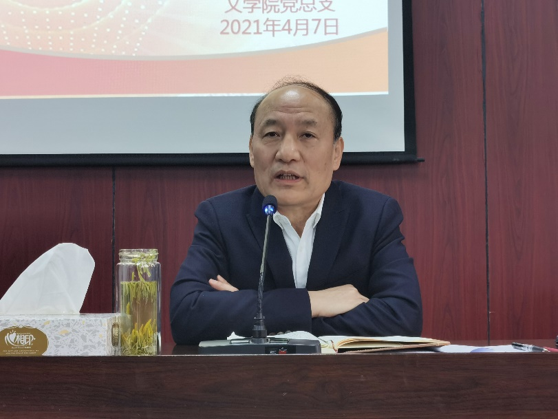 为深入学习贯彻习近平总书记在党史学习教育动员大会上的重要讲话精神和《中共中央关于在全党开展党史学习教育的通知》文件精神,扎实推进文学院党史学习教育走深走实,4月7日下午,文学院党总支在德勤楼第五会议室召开党史学习教育动员部署会暨首场专题党课。文学院全体师生党员近百人参加会议。校党委副书记、纪委书记王凯出席会议并讲授党史学习教育专题党课。会议由文学院党总支副书记庞曦主持。