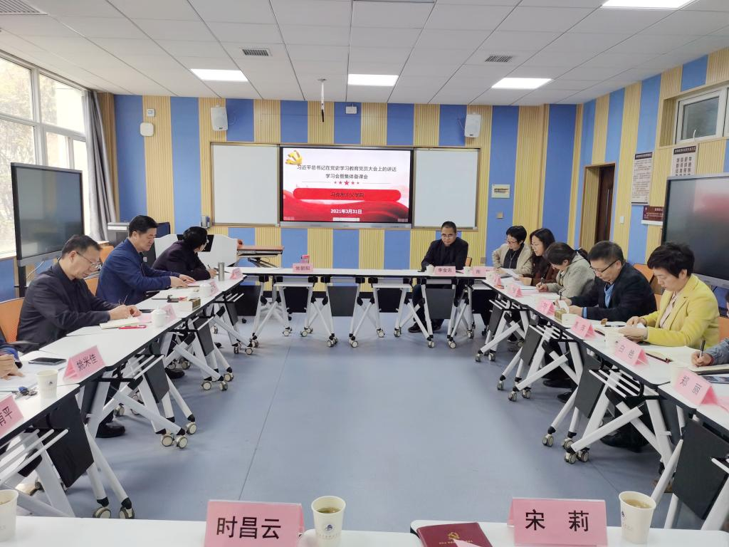 付建成书记指出,从党的百年伟大奋斗历程中汲取继续前进的智慧和力量,激励我们满怀信心迈向全面建设社会主义现代化国家新征程,具有极其重要的现实意义和历史意义。高校肩负着培养社会主义建设者和接班人的使命,为党育人,为国育才是高校的神圣职责。在高校开展党史学习教育,就是要牢记立德树人的根本任务,充分利用课程建设这个主战场、课堂教学这个主渠道,努力拓展以史育人新载体、新阵地,把学习教育活动与育人紧密结合起来,不断提升党史学习教育的实效。特别是作为担负着马克思主义理论研究和立德树人重要使命的马克思主义学院,所承担的包括《中国近现代史纲要》在内的思想政治理论课各门课程,是传播马克思主义理论、强化价值引领和维护国家意识形态安全的主战场,是高校针对青年学生开展思想政治教育的基础性工程,有着全局性和根本性的意义,更要紧密结合中宣部、教育部的要求,将党史学习教育内容有机融入思想政治理论课,推进党史学习教育进课堂、进教材、进头脑。马克思主义学院召开党史学习教育融入《中国近现代史纲要》课程集体备课会,对于充实教学内容,增强思想政治教育效果,提高学生的学习积极性和主动性,具有十分重要的意义。