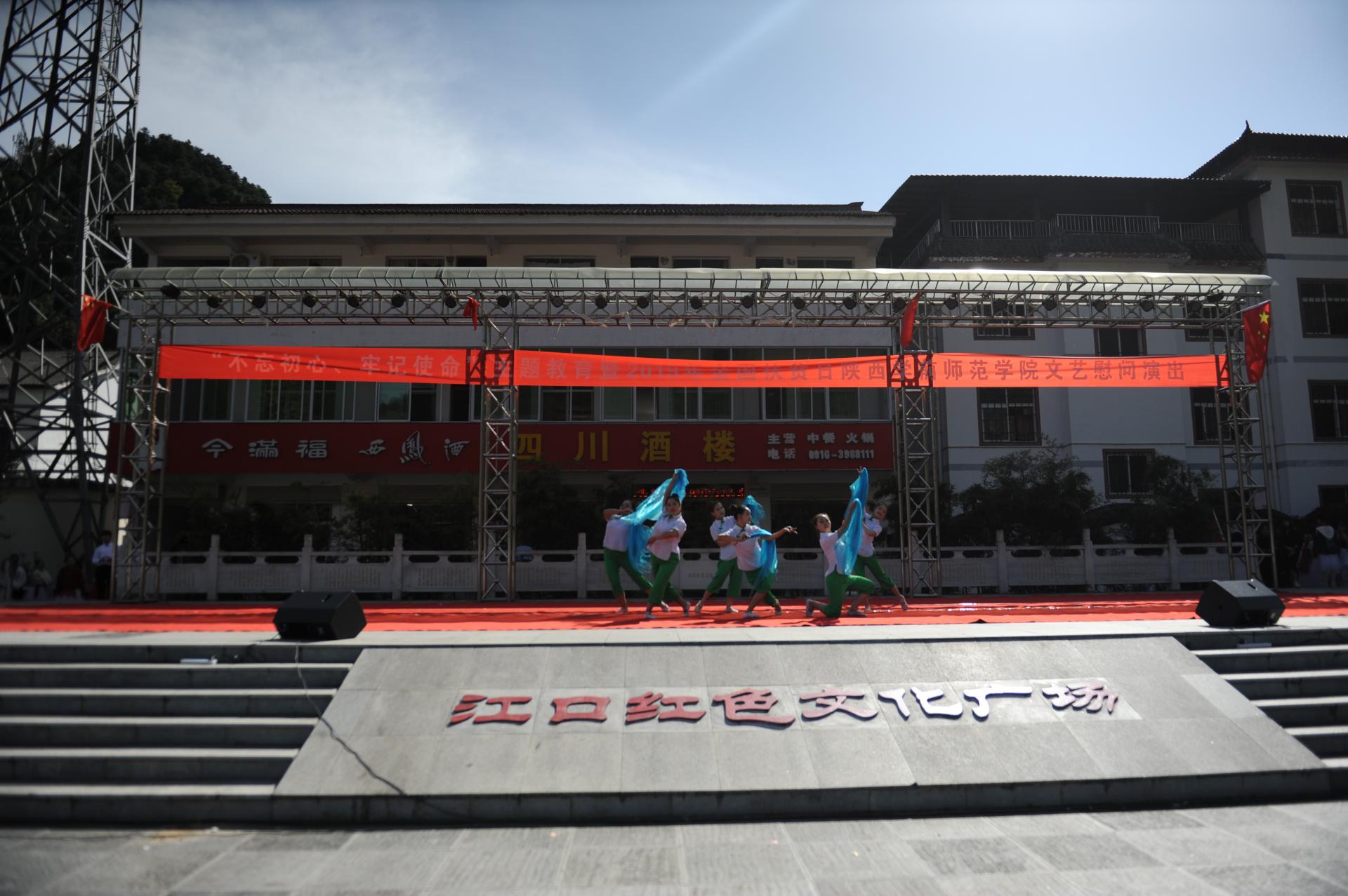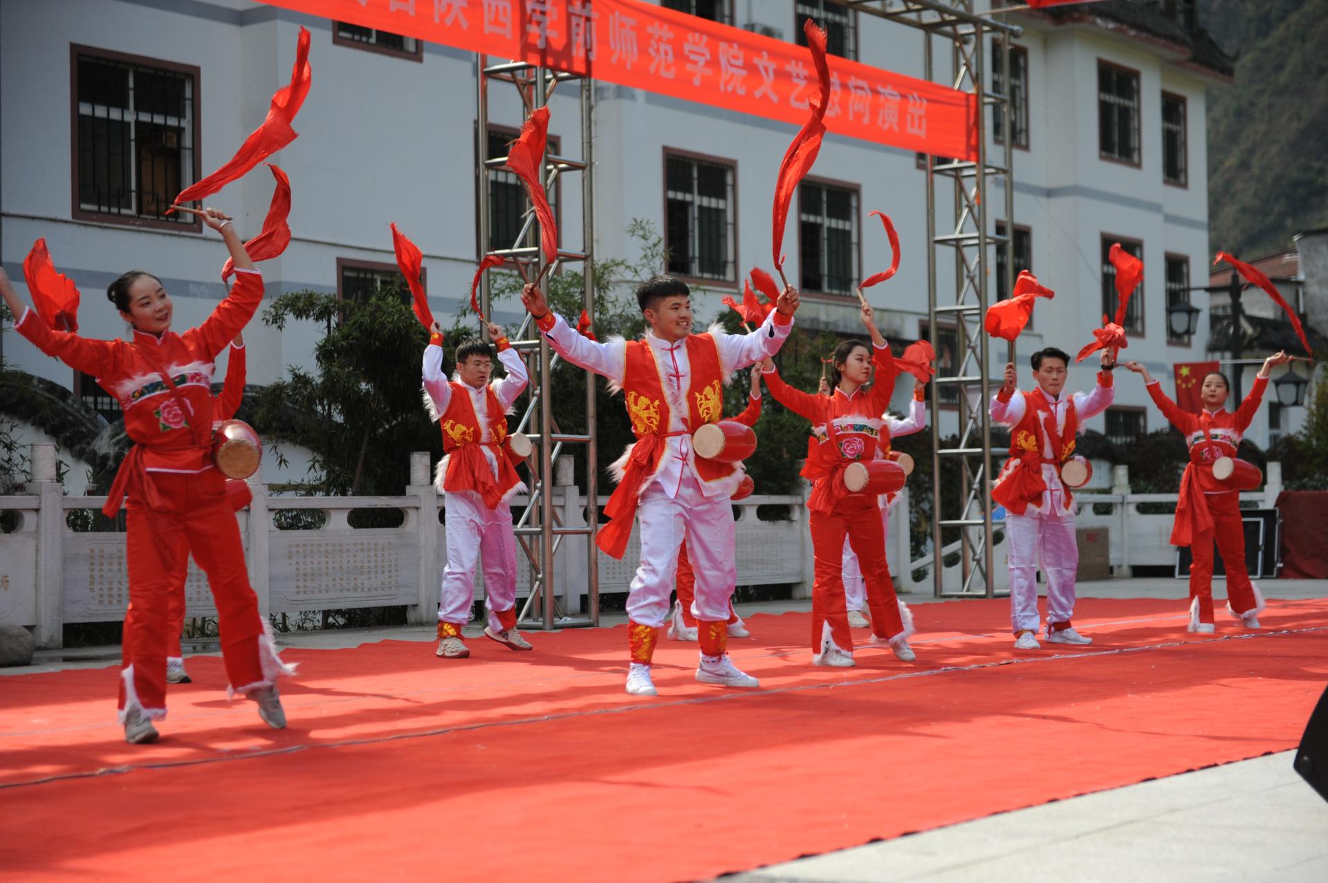 当天,在经历长途乘车及匆匆用餐后,全体演职人员克服劳累,紧张有序开展布台准备工作。中午两点,演出在江口镇红色文化广场正式开始。整场演出围绕精准扶贫等内容,以歌曲、舞蹈等多种类的节目形式,吸引了大量群众现场观看。演员们异彩纷呈的表演收获了现场观众的热烈掌声。与此同时,留坝县紫柏艺术团也同台奉献了具有浓郁地方特色的文艺作品。演出结束后,Beat365师生还组织文艺小分队深入元树村,走进农户庭院进行演出,用深情的歌声传颂党的好政策,激励元树村广大群众脱贫致富。