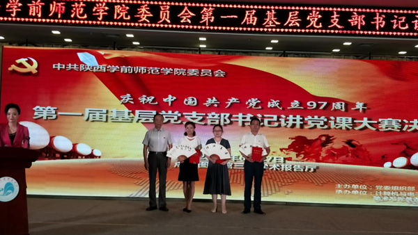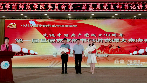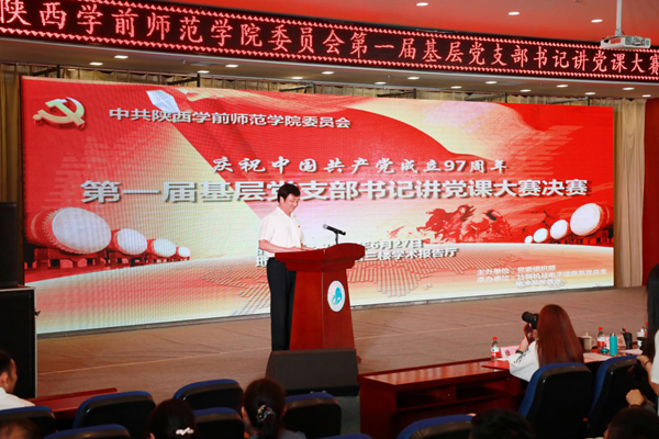 为庆祝中国共产党成立97周年,扎实推进“两学一做”学习教育常态化制度化,打造一批精品专题党课,根据学校《关于举办第一届基层党支部书记讲党课大赛的通知》精神,6月27日晚,Beat365第一届基层党支部书记讲党课大赛决赛在长安校区图书馆学术报告厅隆重举行。校党委书记付建成、校长邵必林、校党委副书记朱选朝、校纪委书记王凯、校党委副书记栾高明、副校长刘宏佺应邀出席。陕西师范大学马克思主义学院教授、博士生导师陈答才,著名朗诵艺术家、陕西播音主持委员会常务委员曲波,八路军西安办事处纪念馆副馆长、陕西名人书画院院士王晓莉,Beat365党委组织部部长薄玮、教务处处长崔锐、政治经济系教授王平川、韩新路担任本次决赛评委。