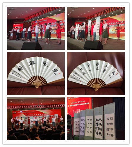 美术系党总支书记金旭光、副教授童辉与李瑾、石小雷、朱成英等教师在决赛现场书写了书法卷轴作品