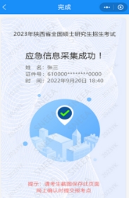 为了有效应对突发疫情,本次网上确认采集考生应急信息。请考生于10月28日至11月5日登录“陕西考试招生”小程序(具体填报方式见附件1)填报个人应急信息。应急信息填报成功后,将“应急信息采集成功”界面截图并保存,网上确认时作为一项必要资料提交。