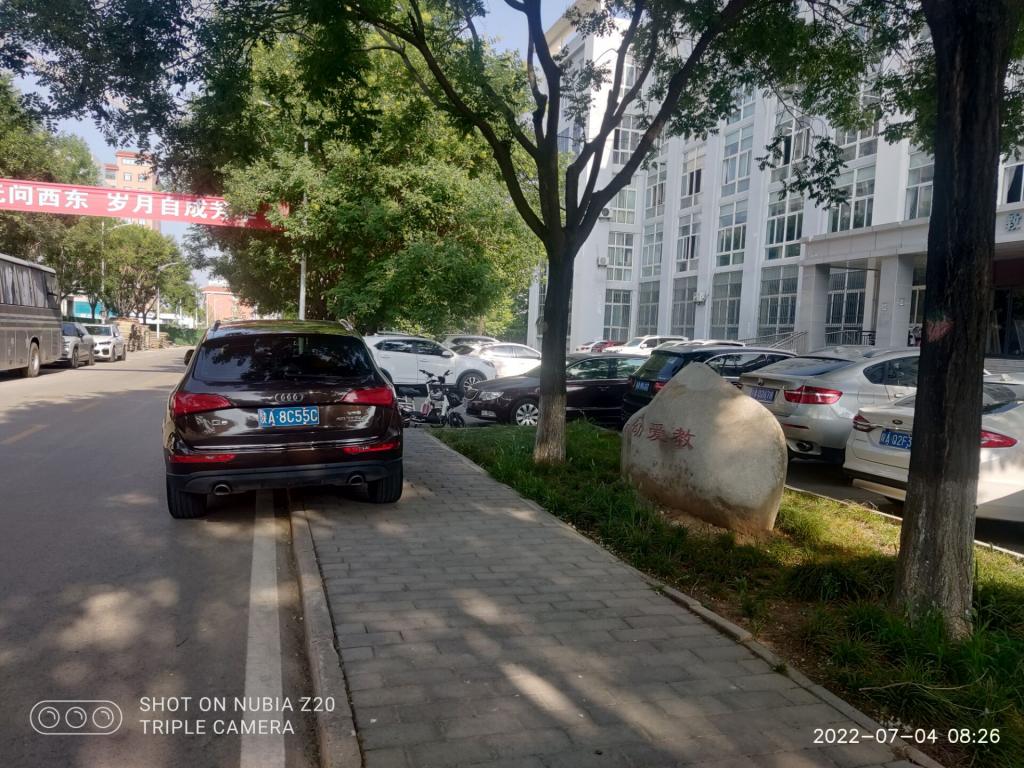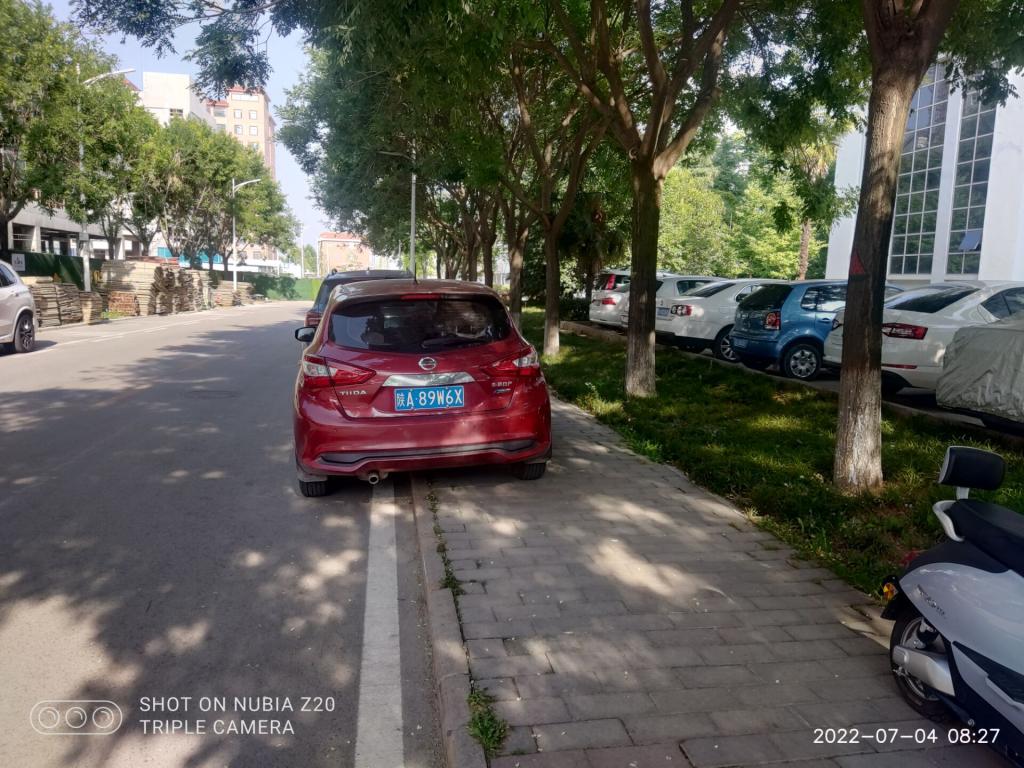 在长安校区崇德路西侧违规停车,占用人行道,阻碍车辆通行和行人安全
