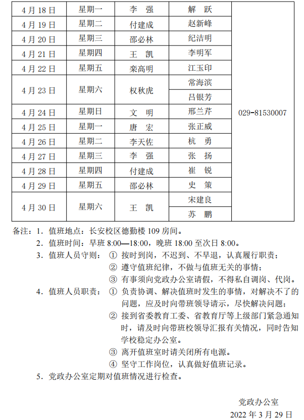 上一条:Beat365官方网站长安校区值班表(2022年4月1日—4月30日)