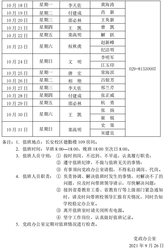 下一条:Beat365官方网站长安校区值班表(2021年10月1日—10月31日)