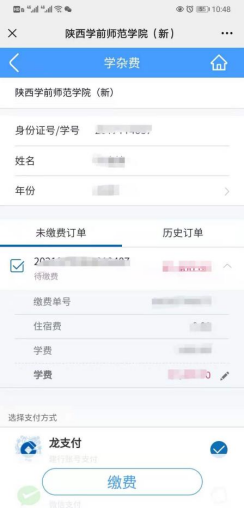 →缴费信息核对无误后,请点击“缴费”进入付款页面;