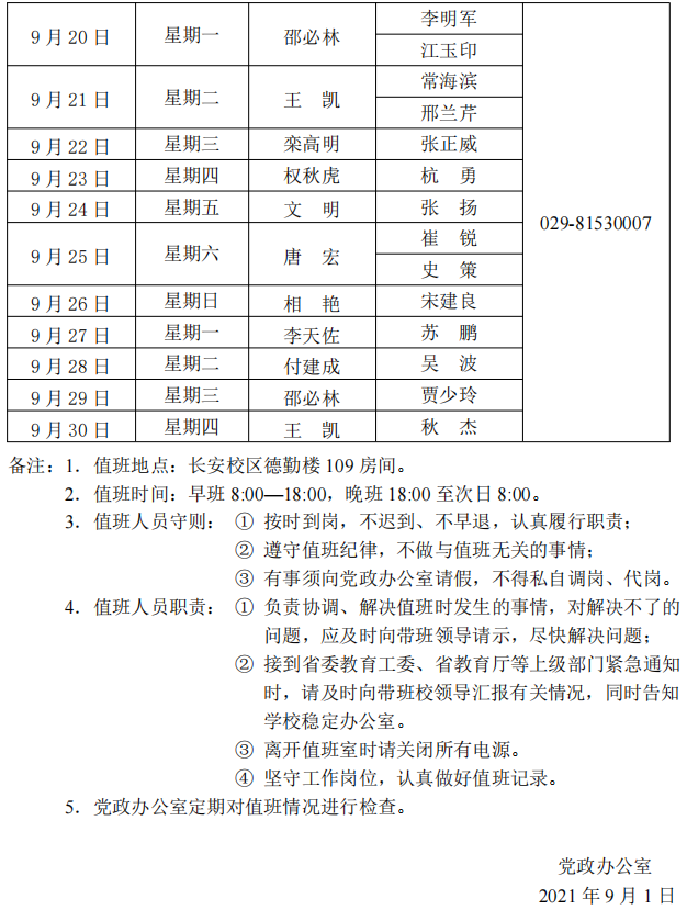 下一条:Beat365官方网站长安校区值班表(2021年9月1日—9月30日)