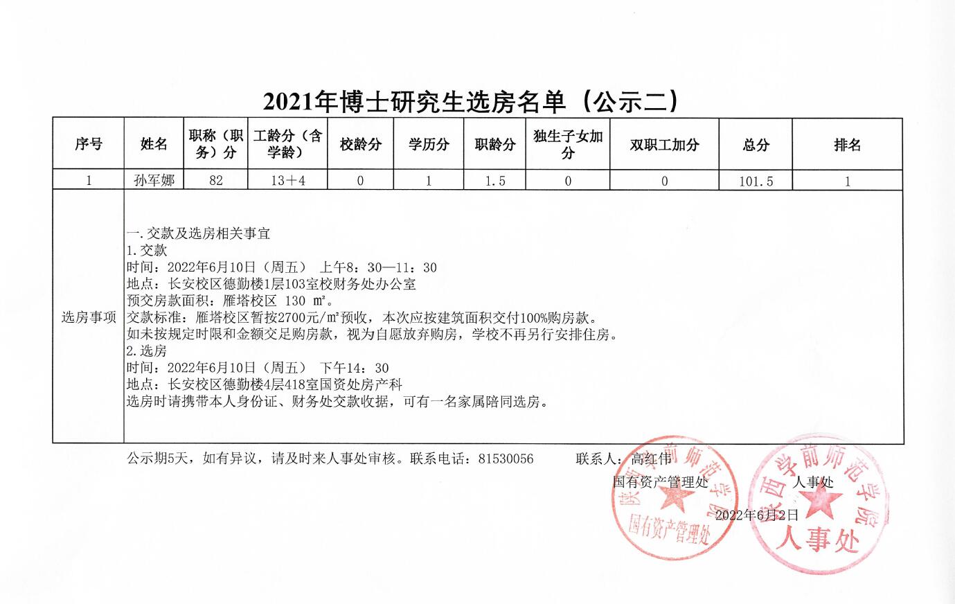 2021年博士研究生选房名单(公示二)