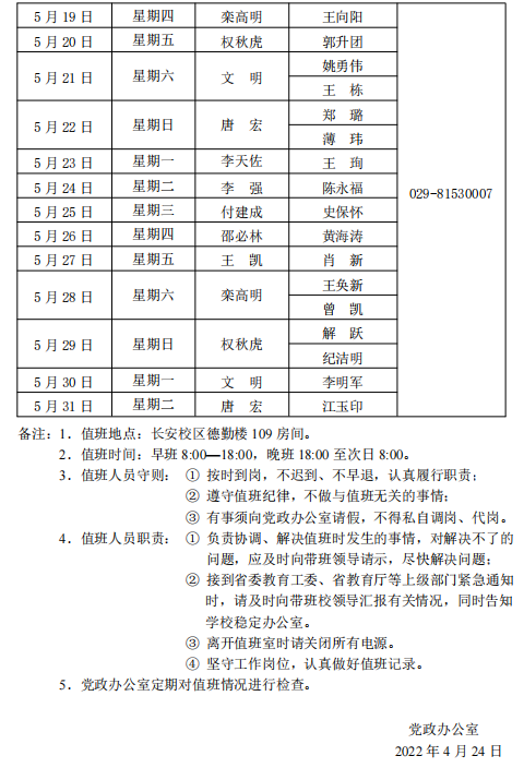 上一条:Beat365官方网站长安校区值班表(2022年5月1日—5月31日)